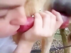 Chupando una gran polla de caballo