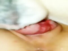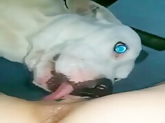 Plays with pussy then dog licks
