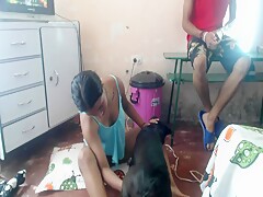 A girl with dog and horse dick
