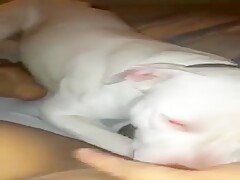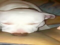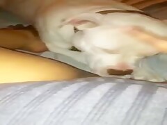 Cute dog licking her pussy
