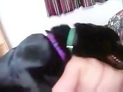Cachorro preto chupando bucetinha