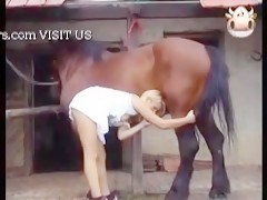 Horse cums in womans mouth