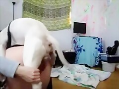 Feeding her dog then fucking him with her BF - Dog sex free