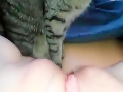 Cachorrinho enfia o fucinho na buceta pra língua entrar