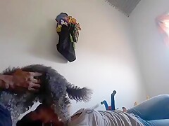 Blonde bitch MILF fucking and sucking her dog - Animals dog
