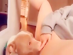 Girl licked by Dog on Webcam