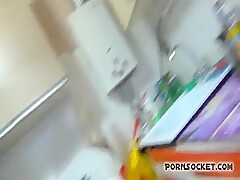 Lara gagged and fucked by dog knot dildo and flares horse cock dildo