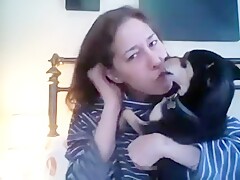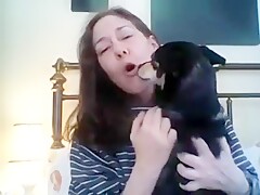 2 Vids Spliced Together Woman Fucks Dog Lots Of Dog Cum