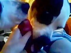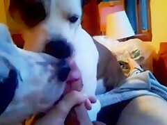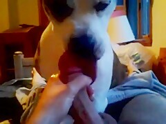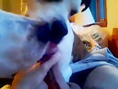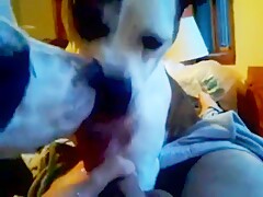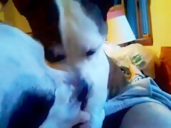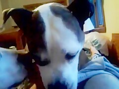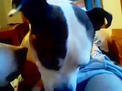 Girl licked by Dog on Webcam