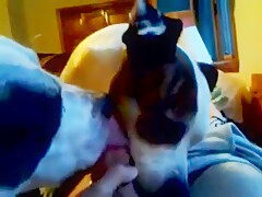 2 dogs licked cum