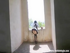 HotkinkyJo Black Angel And Horse Cock In The Castle