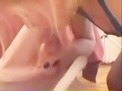 pretty blonde moans loudly as she sucks a big horse cock