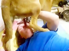 HUSBAND LET A DOG FUCK HIS FAT PERVERTED WIFE IN THE MASK