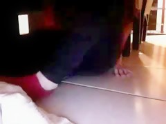 Cute teen from Brazil tries to get her dog to lick her pussy