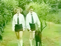 girlfriends walking the dog
