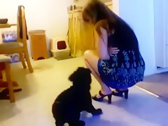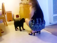 Not Great Quality But Hot. Woman Rides Dog Cowboy Style
