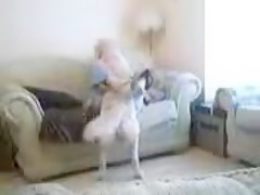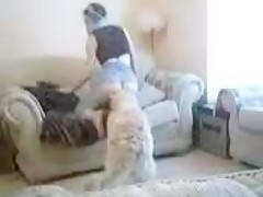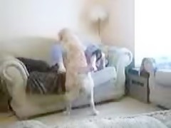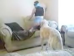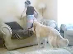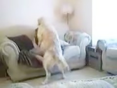 Luscious blonde stoned by her dog in this amateur zoo porn
