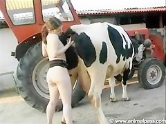 Chica masturbando a una vaca