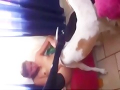 A Girl and Dog Sex Clip a girl has Slow sex with a black dog 2