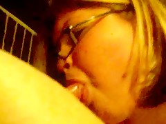 Horny chubby woman sucking deep dog