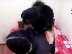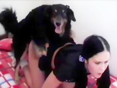 Cute chick puts peanut butter on her pussy and asshole and lets her dog lick