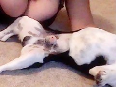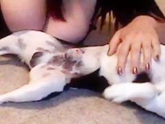 Morena tetona y su perro se graban en webcam