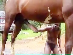 Black girl sucks and fucks a huge horse
