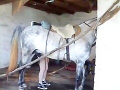 Lara gagged and fucked by dog knot dildo and flares horse cock dildo