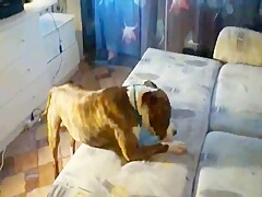 Russian couple fucking the dog on webcam