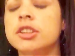 Cute teen from Brazil tries to get her dog to lick her pussy