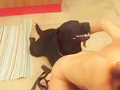 A Girl and Dog Sex Clip a girl has Slow sex with a black dog