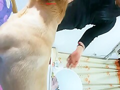 HUSBAND LET A DOG FUCK HIS FAT PERVERTED WIFE IN THE MASK