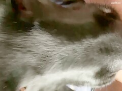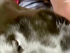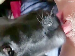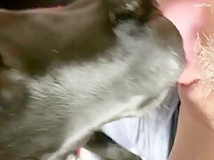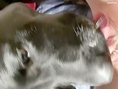 Cute chick puts peanut butter on her pussy and asshole and lets her dog lick