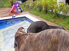 2 Vids Spliced Together Woman Fucks Dog Lots Of Dog Cum