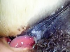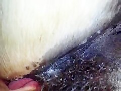 pussy licking from her dark dog