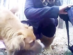 Busty blonde and dog and brunette threesome