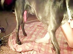 Woman with nice tits has sex with a dog