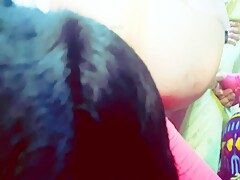 Webcam playing with dog dildo