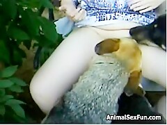 Cute chick puts peanut butter on her pussy and asshole and lets her dog lick