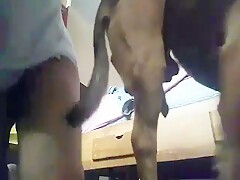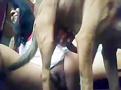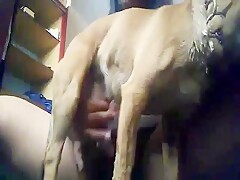 Cute teen from Brazil tries to get her dog to lick her pussy