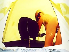 Playing with my dog dildo at public forest