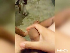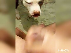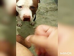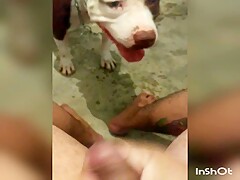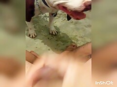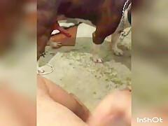 Girlfriend jerking dog