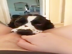 Dog licks loud moaning girls pussy 1 of 2