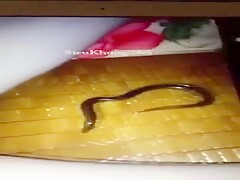 Sticking the eel's head hard in the pussy and masturbating and enjoying a lot