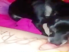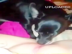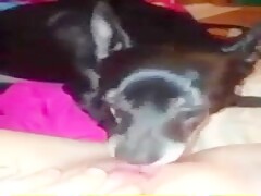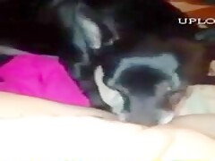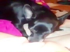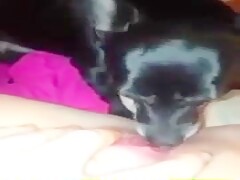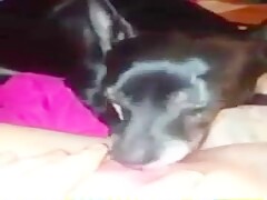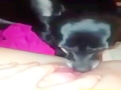 Dog lick my big and fat clit