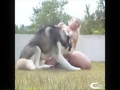 Blonde bitch MILF fucking and sucking her dog - Animals dog