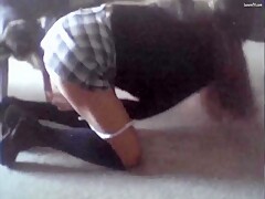 Slut in school uniform fucked doggy style in dog
