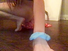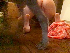 Cute teen from Brazil tries to get her dog to lick her pussy