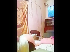Slut films her dog licking her hole