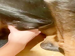 Hot Body Girl Is Fucking Dog Style With Lovely Dog In pool
